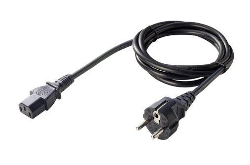 Three-pin power cables with IEC 320 C13 "PC" connector and AC plug for Europe (Type E), Great Britain (Type G), USA/Canada (Type B), Switzerland (Type J), Australia (Type I), Argentina (Type I), China (Type I), Brazil (Type N), Italy (Type L) or Japan (Type B). Standard length 1.8m.
